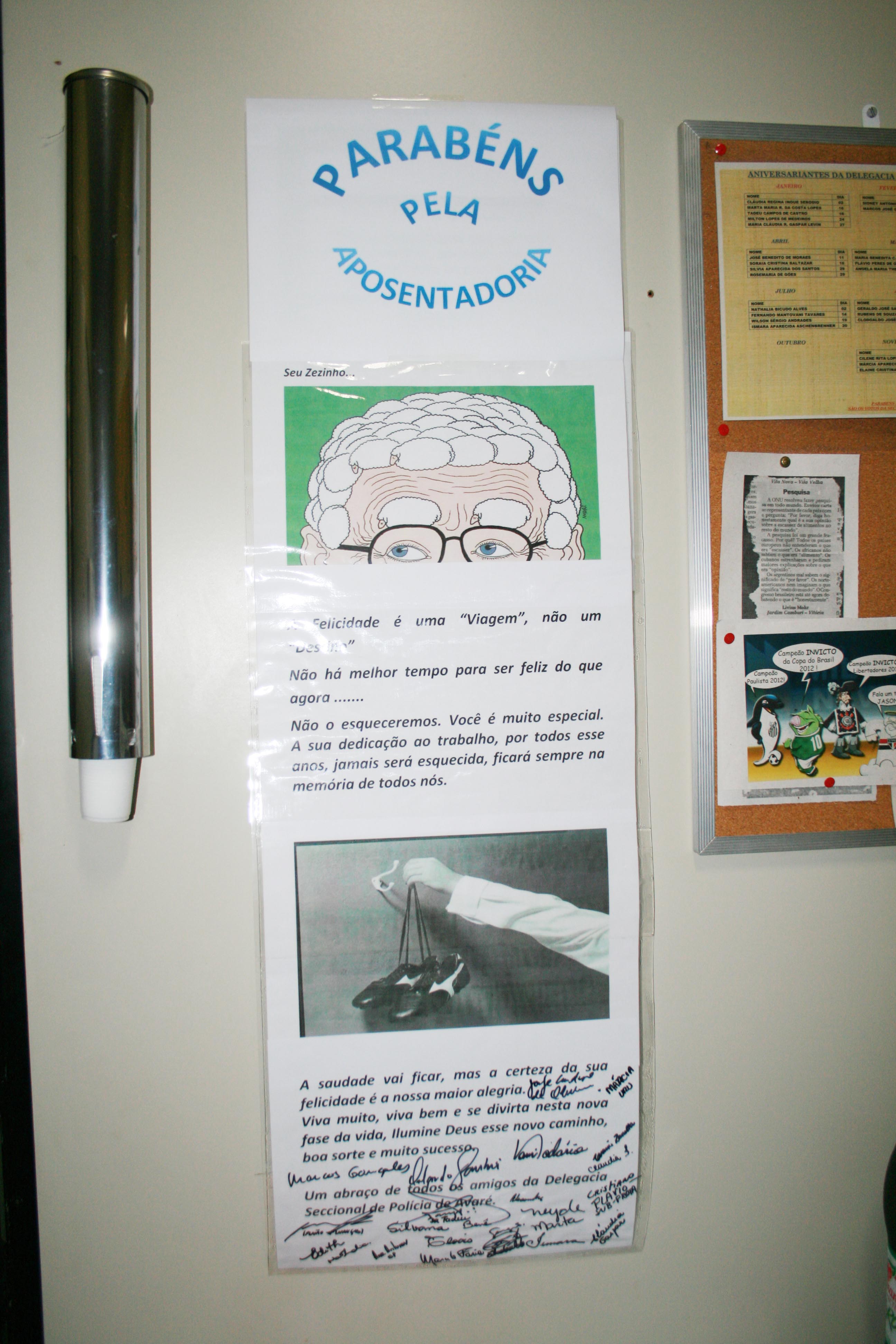 Merecidamente essa festa! ele é um funcionário que se dedicou ao máximo para a Instituição Policial Civil (que muitas vezes não valoriza esse esforço) Mas nós, colegas de serviço, sabemos muito bem do valor do Zezinho! Valeu, Zé!!!!!! Só podiam ter convidado os colegas que estão de férias, né… essa aposentadoria tinha que sair no meu afastamento… fala sério…