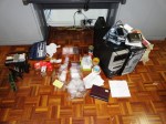Foi apreendido vasto material utilizado na preparação e comércio da droga, entre os quais balanças de precisão, fitas adesivas e embalagens plásticas, bem como computadores, aparelhos celulares, dispositivos de memória, diversos documentos que podem comprovar o movimento financeiro do tráfico e, ainda, dois veículos.
