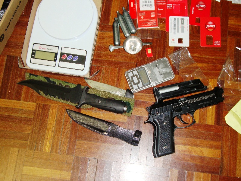 Foi apreendido vasto material utilizado na preparação e comércio da droga, entre os quais balanças de precisão, fitas adesivas e embalagens plásticas, bem como computadores, aparelhos celulares, dispositivos de memória, diversos documentos que podem comprovar o movimento financeiro do tráfico e, ainda, dois veículos.