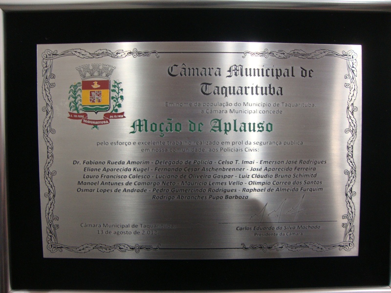 De autoria do presidente do Legislativo, vereador Carlos Eduardo da Silva Machado, e aprovada por unanimidade, a Moção de Aplauso nº 22/2012 foi uma forma de “reconhecer o trabalho o desses profissionais que dedicam suas vidas ao bem estar da comunidade”.
