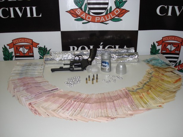 A ação foi desencadeada de forma rápida e surpreendeu os suspeitos, que não tiveram tempo de reagir. Munidos de mandado de busca, os policiais revistaram a casa e encontraram 49 pedras de crack e um revólver municiado, além de R$ 2.411,00 em cédulas diversas.