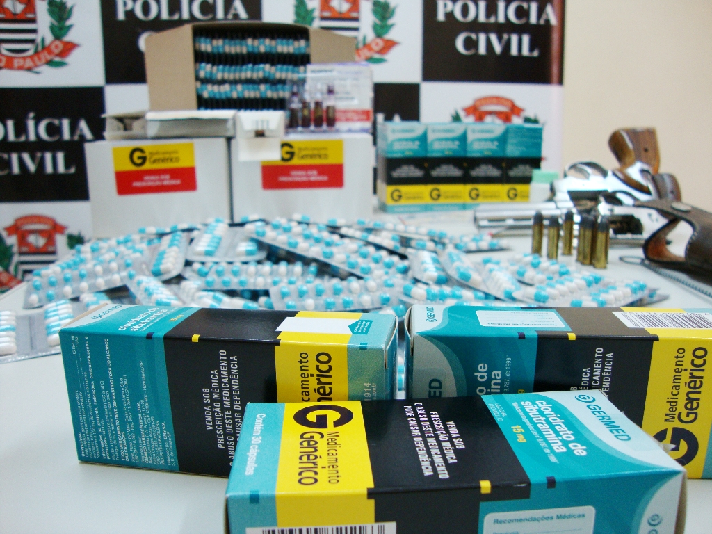 Os policiais investigavam denúncia de armazenamento e venda ilegal de medicamentos; foram apreendidos 380 comprimidos de Cloridrato de Sibutramina e remédios sem nota fiscal de origem com inscrição de venda á hospitais; dois revolveres também foram apreendidos no local.