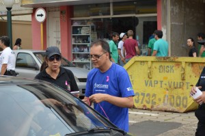 A ação foi realizada no Largo do Mercado, onde motoristas que aguardavam o sinal verde do semáforo eram abordados e recebiam panfletos alusivos à causa. Um laço rosa também foi colocado no retrovisor esquerdo dos veículos.