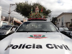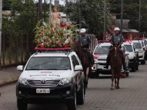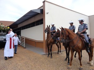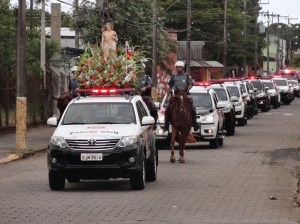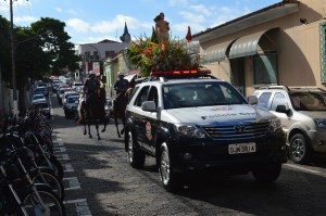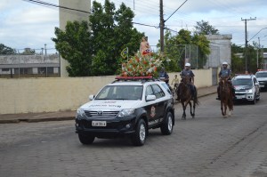 Como já é tradição, a missa foi antecedida por uma carreata com saída do Plantão Policial. Uma queima de fogos marcou o início do ato, que contou com a participação de viaturas da Polícia Civil e também da Polícia Militar, através do Corpo de Bombeiros, Pelotão de Cavalaria e Rondas Ostensivas com Motocicletas – Rocam.