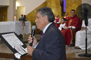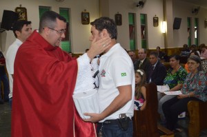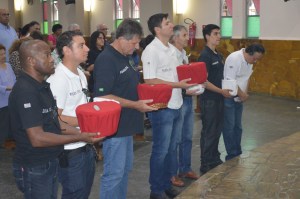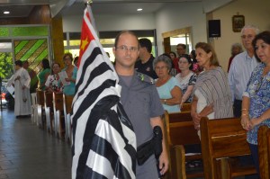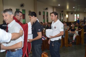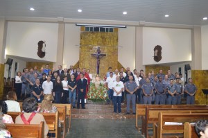 O pároco Edélcio Augusto Soares recepcionou os participantes na entrada da igreja. Em um primeiro momento ele abençoou as viaturas que participaram da carreata. Logo em seguida, deu início à celebração, agradecendo pela escolha da paróquia como sede da missa, segundo ele, bastante comemorada pela comunidade local.