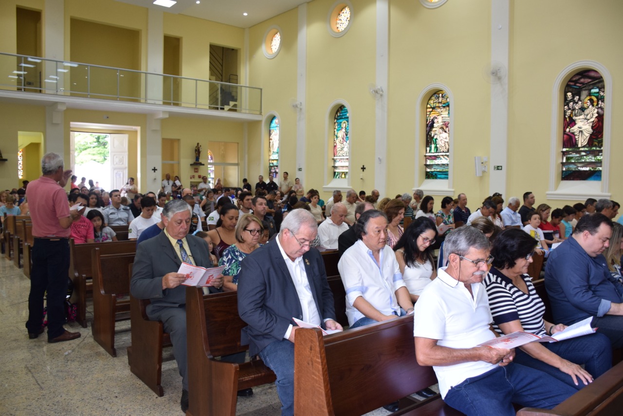 Pontualmente às 10 horas o padre Ademar Domingos Roma deu início à missa. Além de policiais, agentes penitenciários e guardas municipais, a cerimônia atraiu centenas de devotos, entre os quais integrantes da comunidade de São Sebastião. Os cânticos e hinos da missa foram entoados pelo Coral São Benedito.