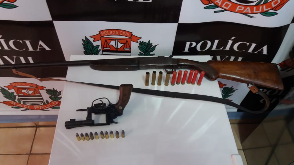A localização de projéteis de outro volume, inclusive alguns já utilizados, chamou a atenção dos policiais civis, que logo depararam com outra arma, dessa vez uma espingarda cartucheira. Encontrado atrás de uma porta, o objeto estava desmuniciado.