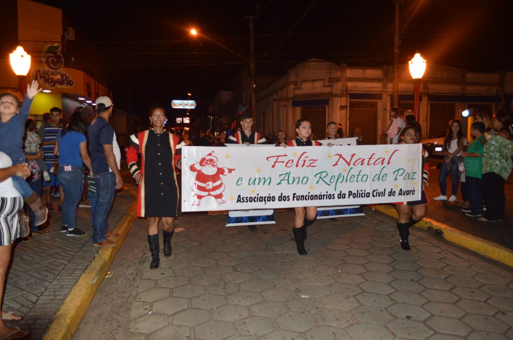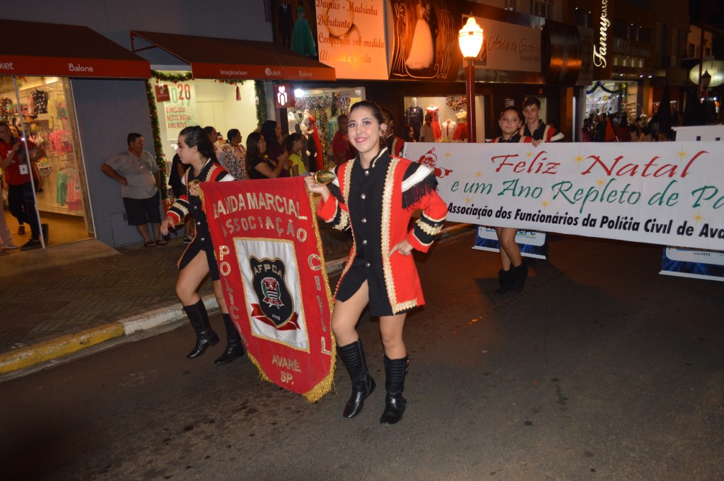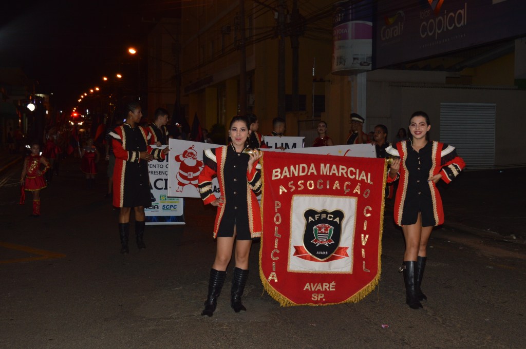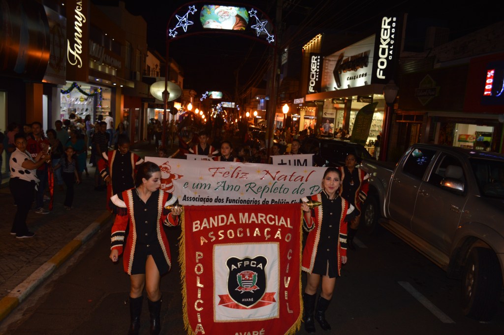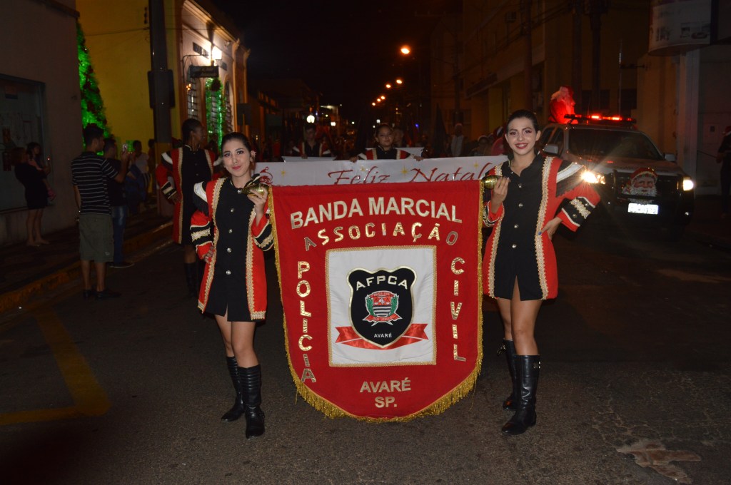 Na noite desta quinta-feira, dia 19/12, foi realizada nas ruas do centro de Avaré, mais uma edição do desfile de Natal da banda marcial da Associação dos Funcionários da Polícia Civil da cidade, a AFPCA.