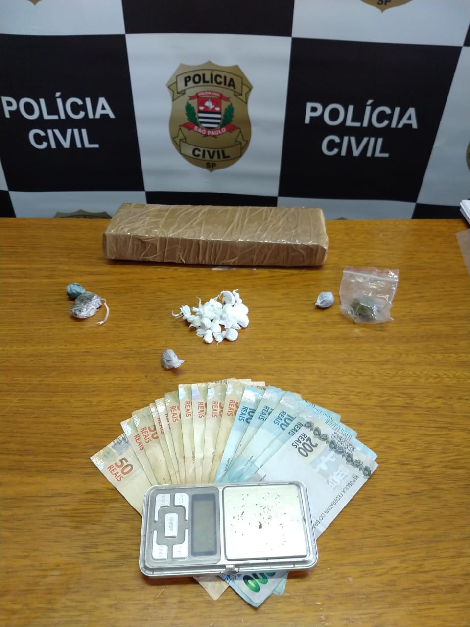 Segundo o boletim de ocorrência, mais de meio quilo de maconha (1 tijolo e outras porções menores) e 16 papelotes de cocaína (21,8 gramas) foram localizados no imóvel onde o grupo estava, uma casa de fundo na Rua Argemiro Vieira de Andrade. Um cão farejador, treinado pelo Canil da SAP (Penitenciária 1 de Avaré), auxiliou nas buscas. Além dos entorpecentes, foram apreendidos uma balança digital, telefones celulares e R$ 1.250,00.