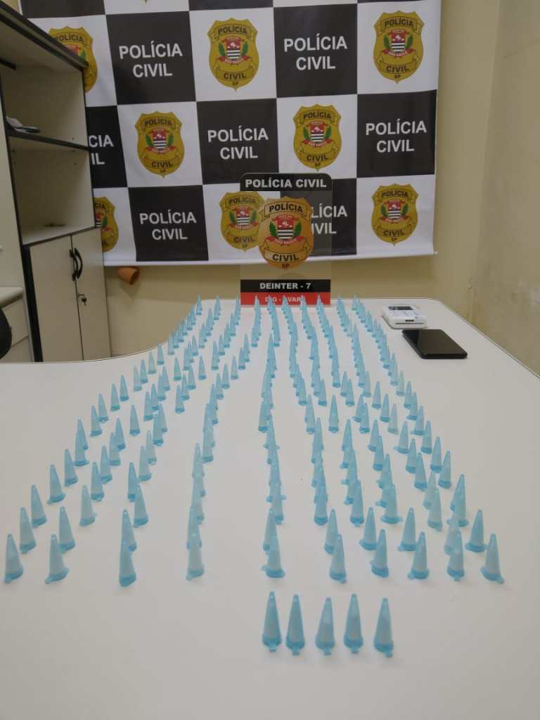 A Delegacia de Investigações Gerais (DIG) prendeu um casal na madrugada de hoje, dia 1/05, em Avaré, por tráfico e associação para o tráfico de drogas. No carro ocupado pelo homem e sua amásia, com 34 e 24 anos respectivamente, foi localizada cocaína pronta para consumo, acondicionada em 247 recipientes conhecidos como “pinos”.