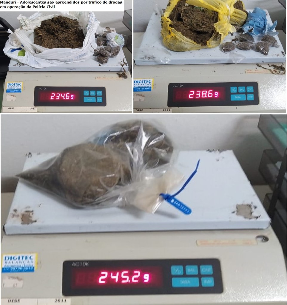 De acordo com a Polícia Civil, mais de meio quilo de maconha foi apreendido com o grupo, nas residências deles, localizadas no residencial Célia II e no centro. A droga estava separada em porções.