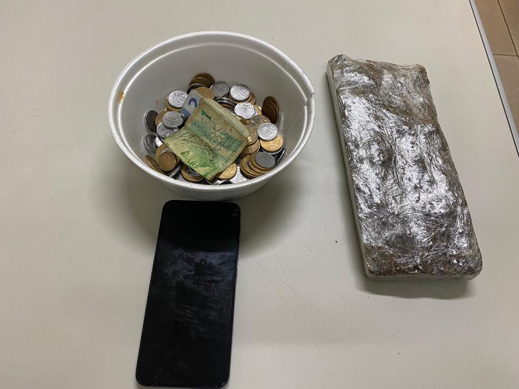 Segundo o boletim de ocorrência, na casa onde ele morava foi localizada uma porção de maconha pesando aproximadamente meio quilo. Além da droga, a Polícia apreendeu um telefone celular e dinheiro.