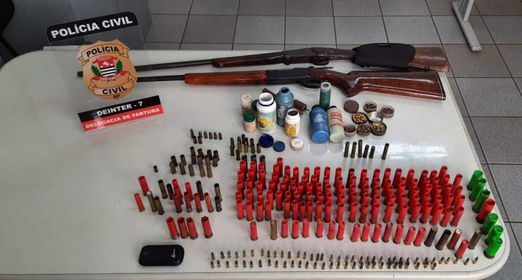 A Polícia Civil apreendeu armas de fogo e munições com um homem de 73 anos nesta quarta-feira, dia 01/09, em um sítio, na cidade de Fartura. Ele foi preso em flagrante por posse irregular de arma de fogo de uso permitido.