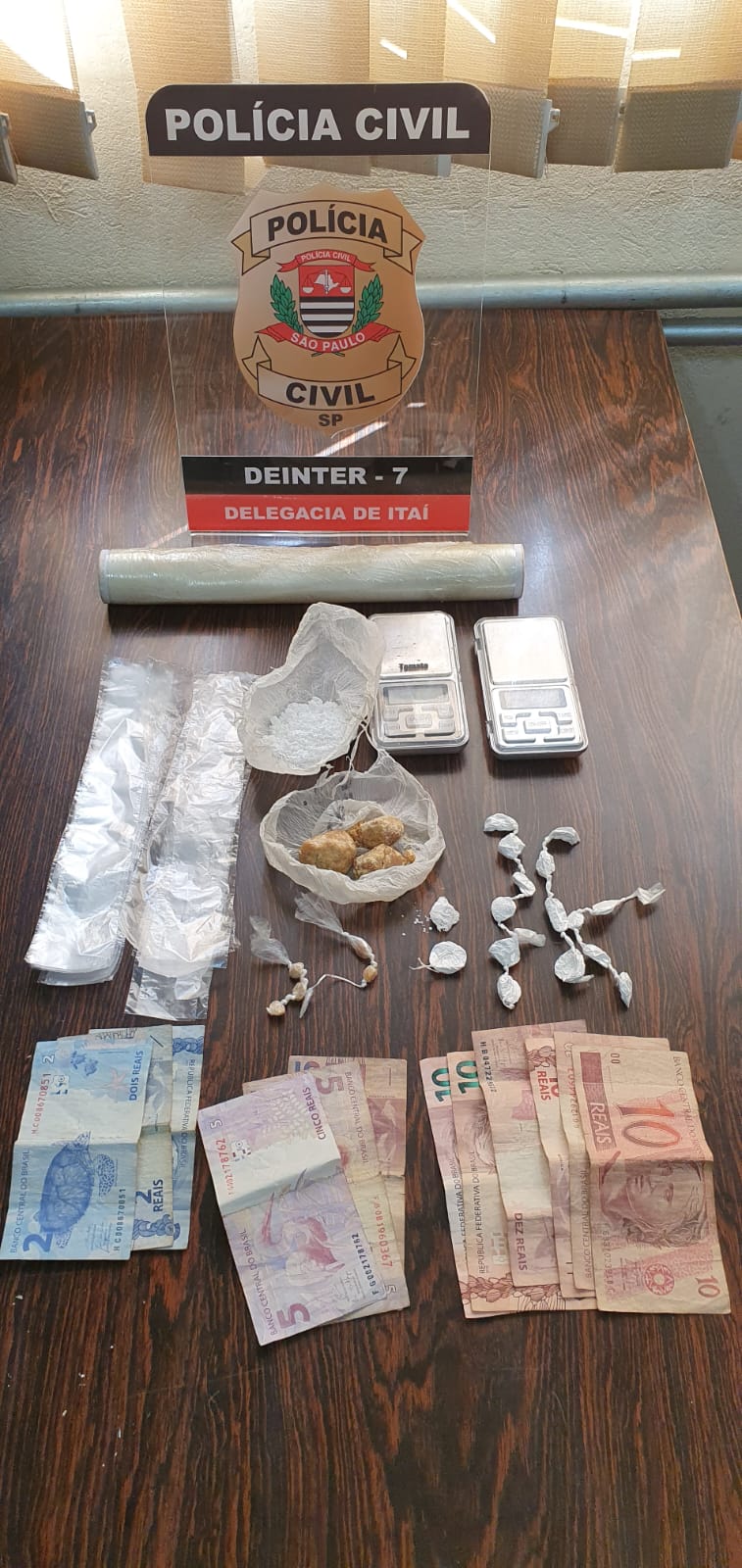 Dois homens, com 19 e 33 anos, foram presos em flagrante na manhã desta terça-feira, dia 13/9, em Itaí, por tráfico de drogas e associação para o tráfico, durante cumprimento de mandado de busca e apreensão domiciliar por policiais civis do município. O fato ocorreu em uma residência situada na Vila Beiro Rio.