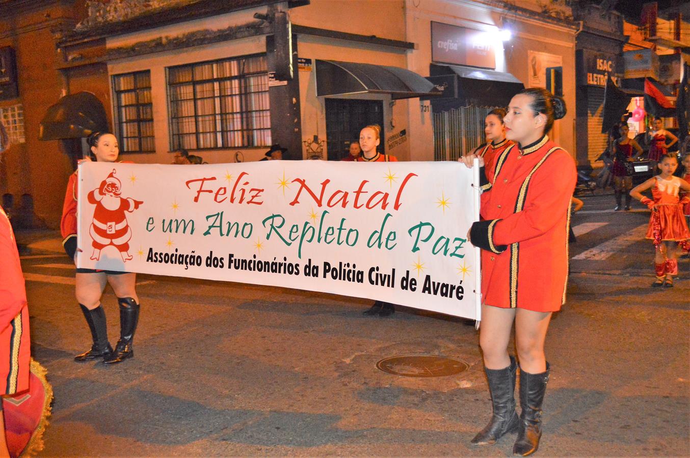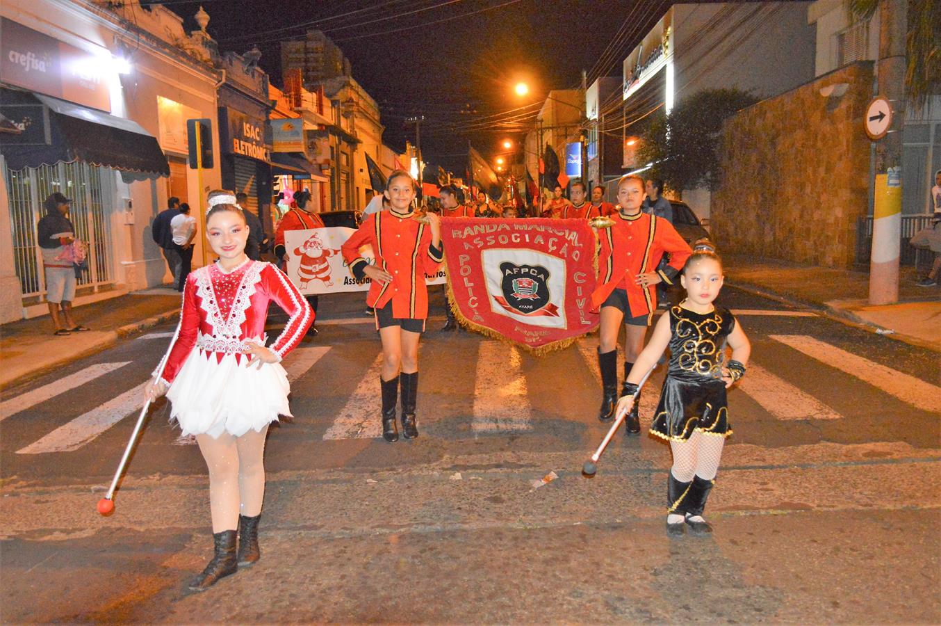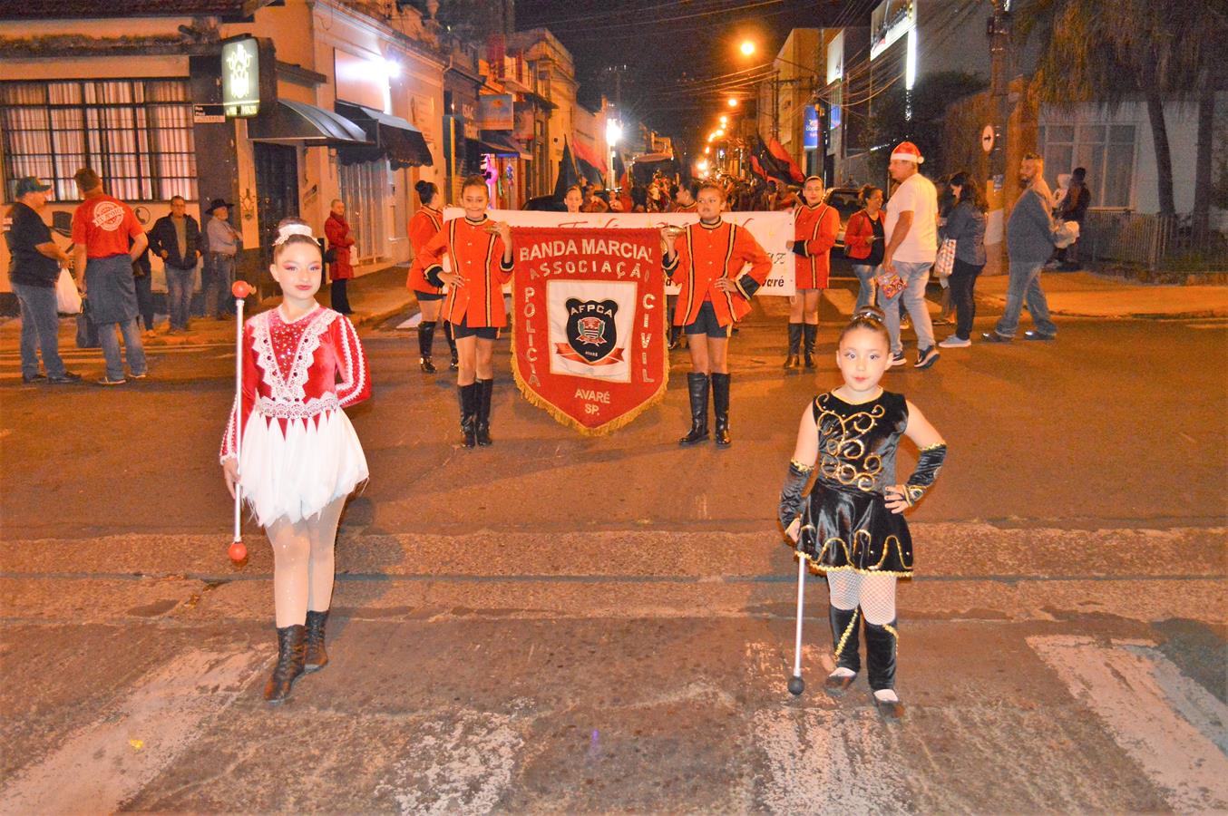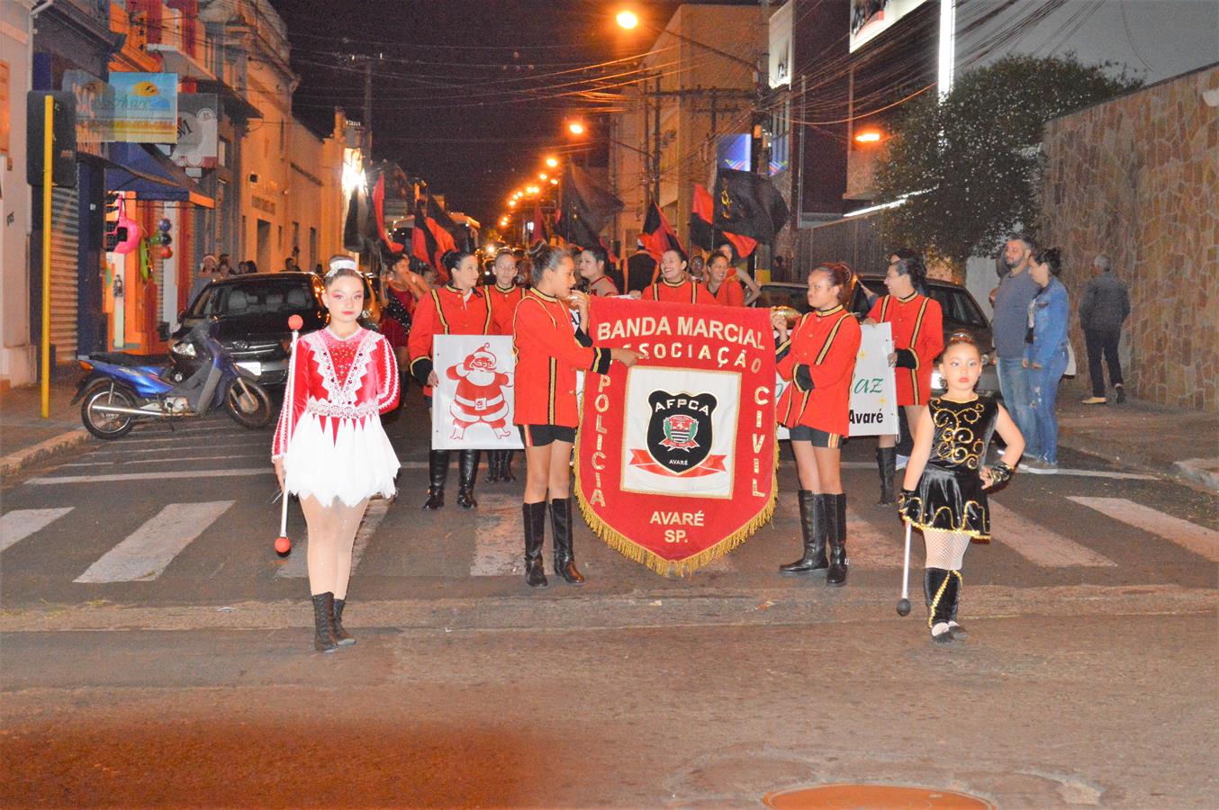 Com a presença do Papai Noel, a Banda Marcial da Associação dos Funcionários da Polícia Civil de Avaré, a AFPCA, desfilou no centro de Avaré na noite de quinta-feira, dia 22/12, e divertiu muito quem foi aproveitar o comércio aberto até mais tarde em razão do período natalino.