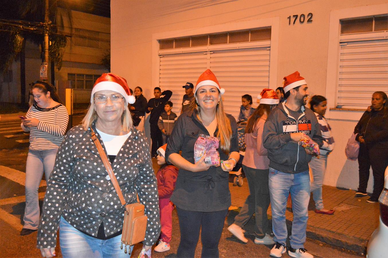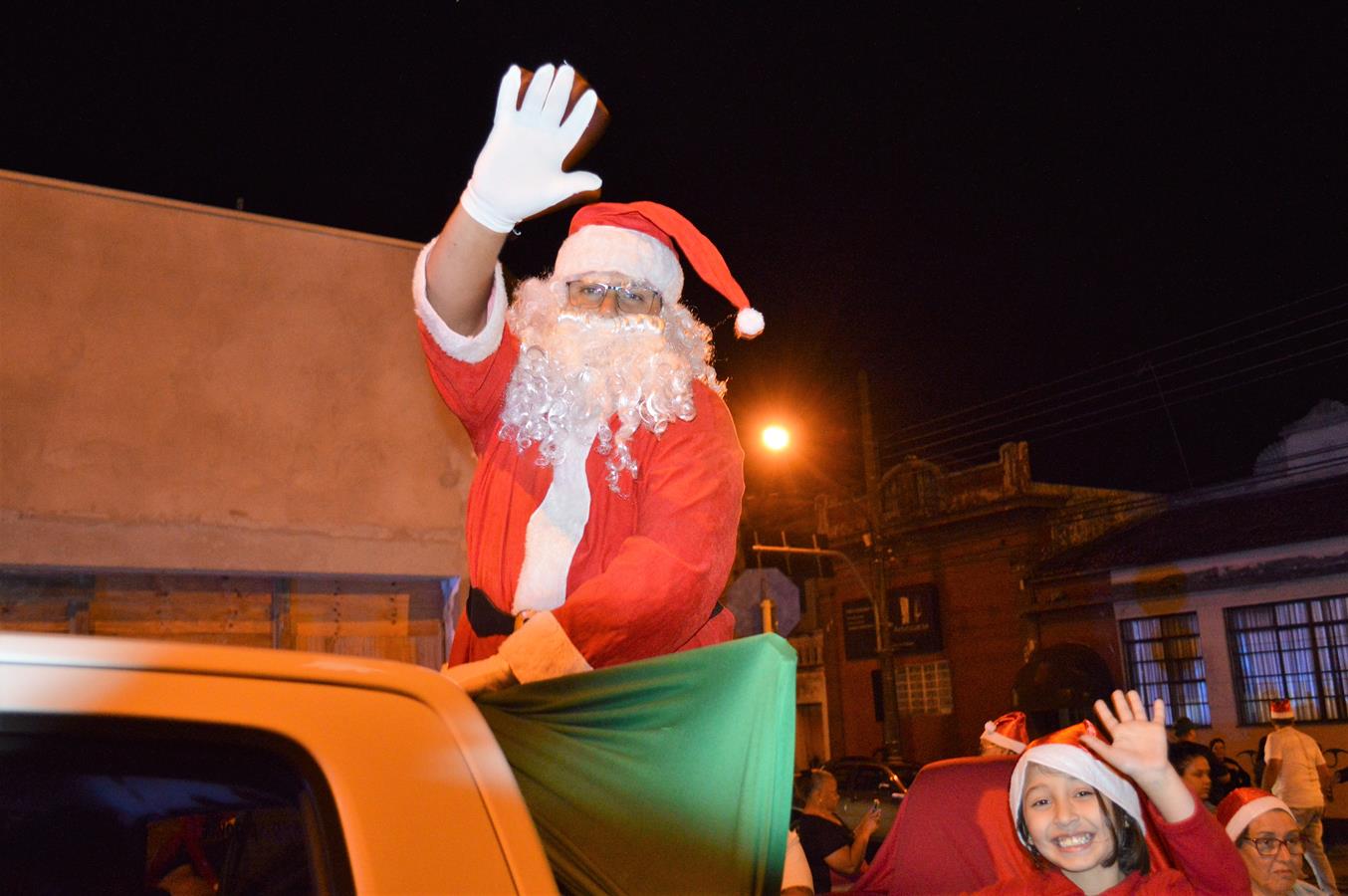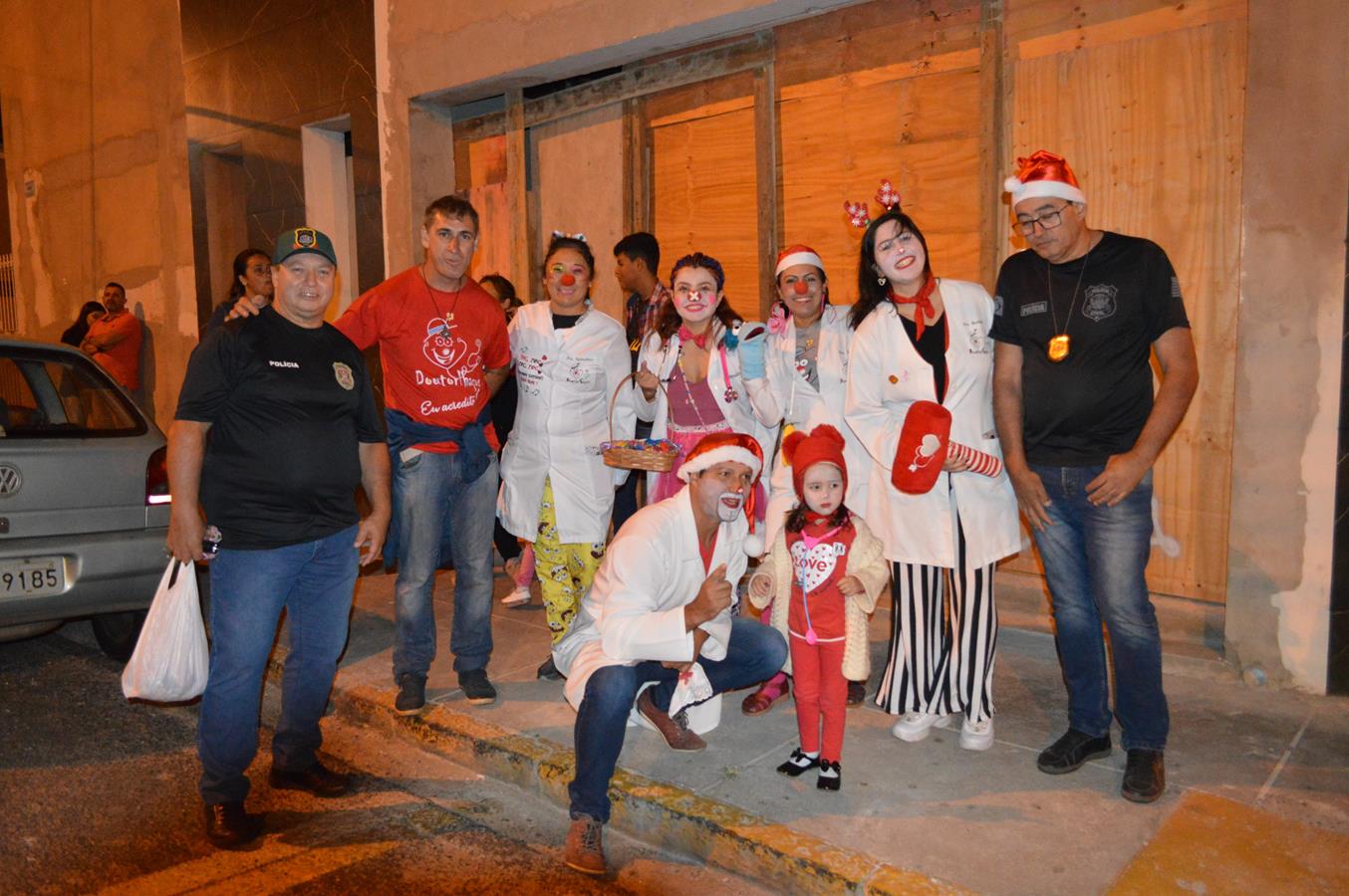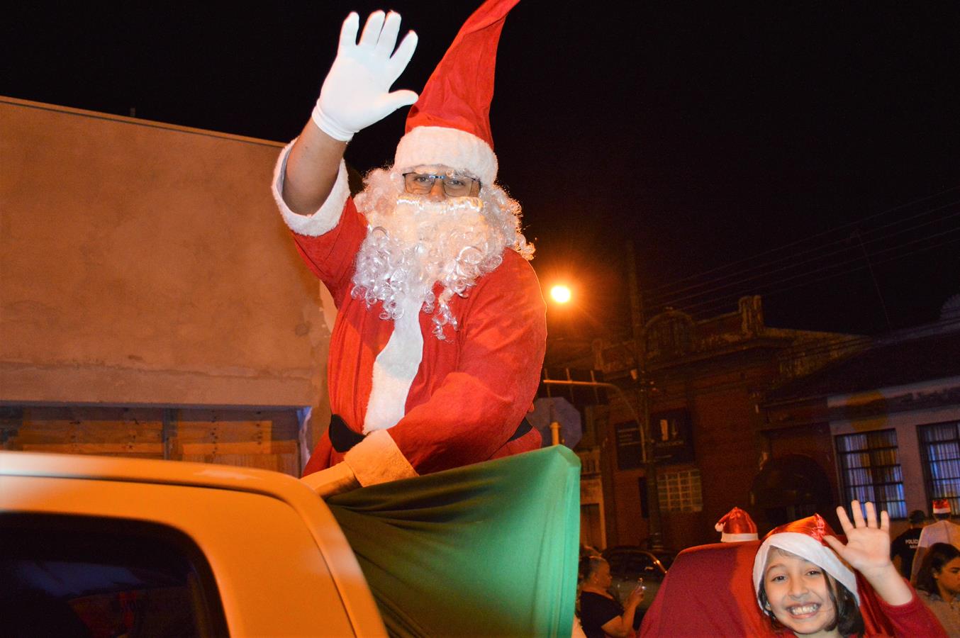 Conduzido na caçamba de uma viatura da Polícia Civil e acompanhado por integrantes da corporação e seus familiares, a atração da noite, o bom velhinho Papai Noel, distribuiu balas e sorrisos para o público. Ele também atendeu a vários pedidos para tirar fotos e cativou crianças e adultos.