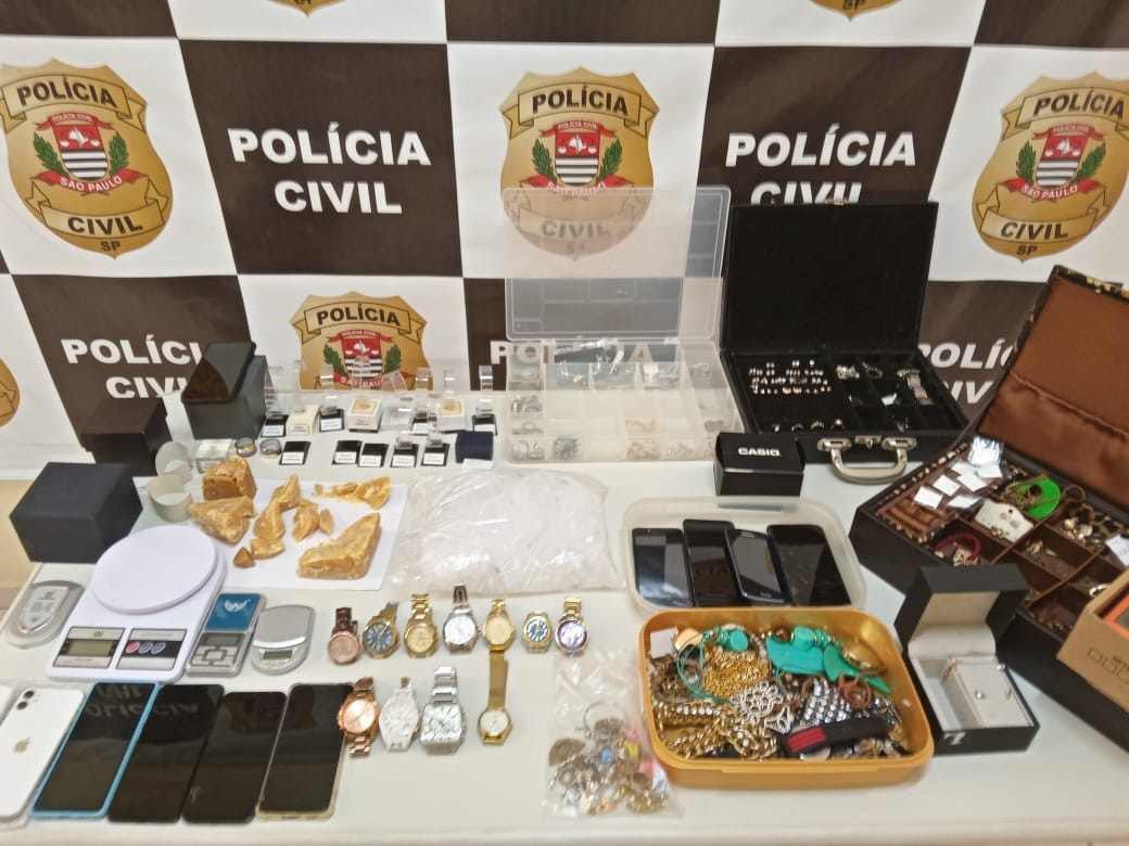 Além das prisões, a operação tinha como objetivo o cumprimento de mandados de busca e apreensão na residência dos investigados. Com esse trabalho foi possível recuperar relógios e joias, bem como localizar porções grandes de crack com a mulher de um dos alvos, motivo pelo qual a mesma também foi autuada em flagrante pelos crimes de tráfico e associação para o tráfico de drogas.