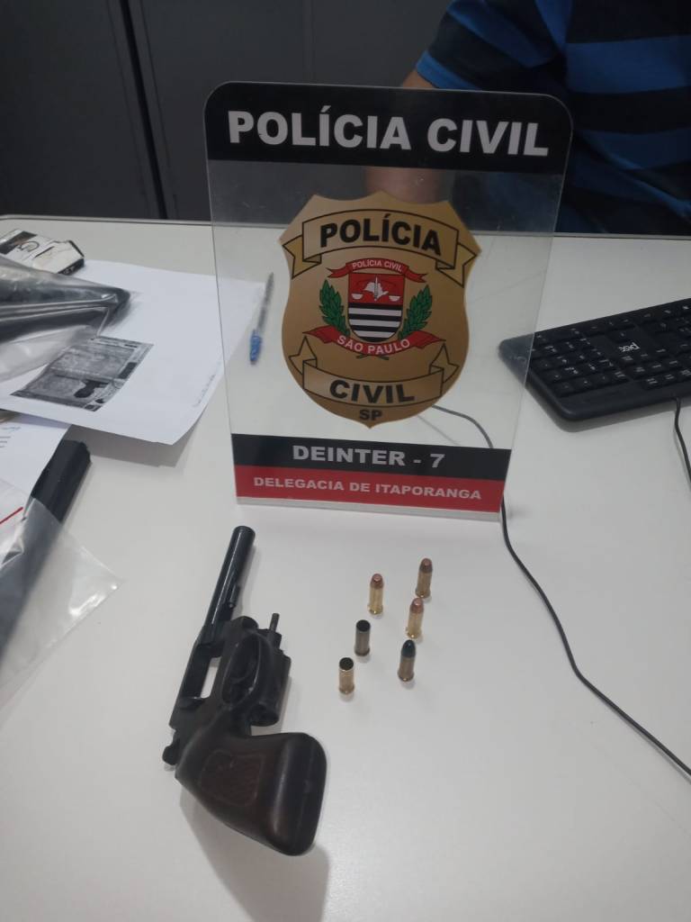 Segundo a Polícia Civil, um revólver de calibre 38 com numeração suprimida foi encontrado em um sítio onde o autuado se encontrava, no Bairro dos Silvas. Além da arma, também foram apreendidas no local sete munições, duas delas deflagradas.