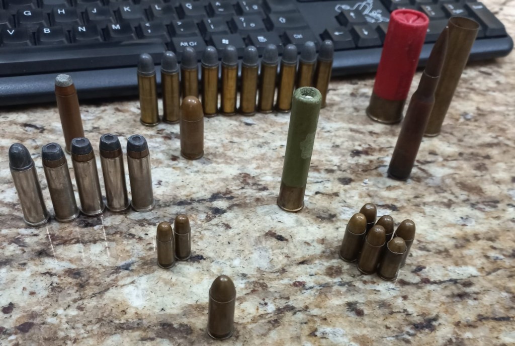 De acordo com os policiais que participaram da averiguação, dentre os cartuchos apreendidos havia 30 de diferentes calibres, como 38, 357, 22, 32, 45 e 12, todos intactos, bem como 45 já deflagrados, também de dimensões variadas.
