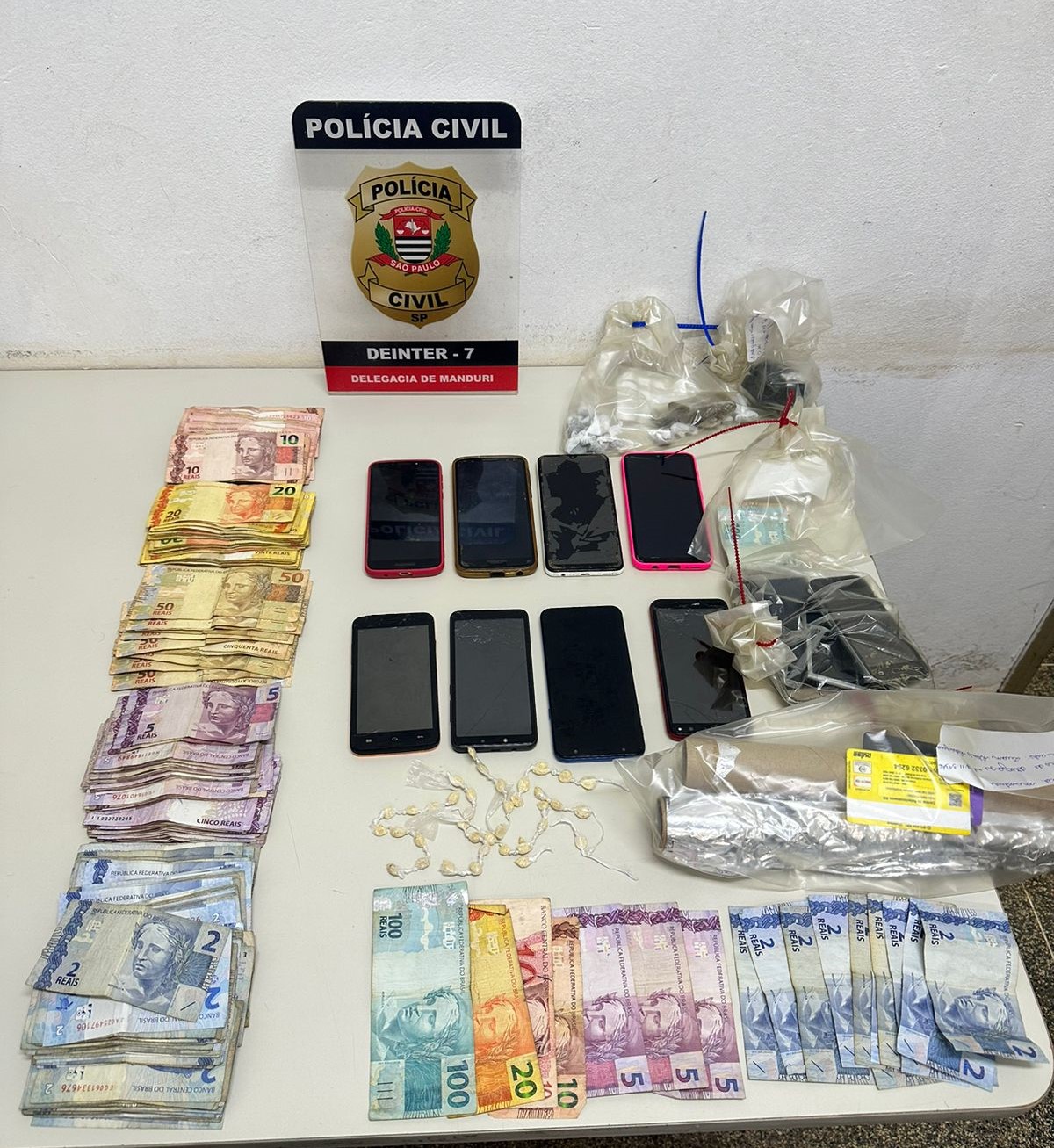 A operação prosseguiu em outra casa no mesmo bairro, que, de acordo com a investigação, era usada para armazenar drogas. Lá, os policiais encontraram 37 porções de crack e aproximadamente R$ 200, também em notas miúdas.