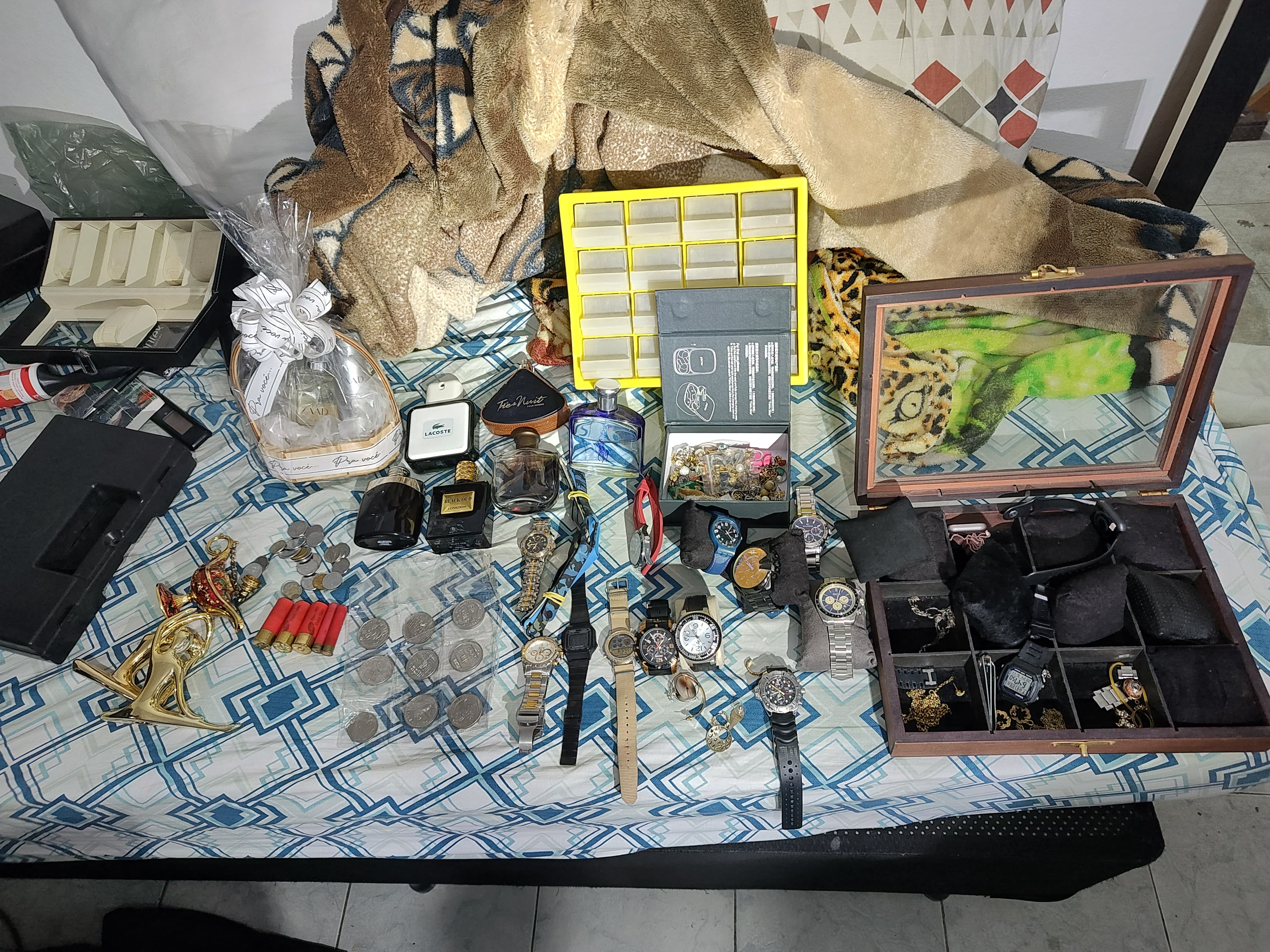Durante as buscas, os policiais apreenderam veículos de luxo, sendo um deles, da marca BMW, com queixa de furto. Foram apreendidos também joias, relógios, televisores, perfumes importados e outros objetos relacionados aos furtos cometidos pelo grupo. As prisões são temporárias, mas poderão ser convertidas em preventivas devido às evidências reunidas durante a operação.