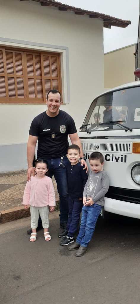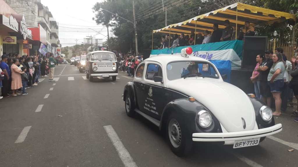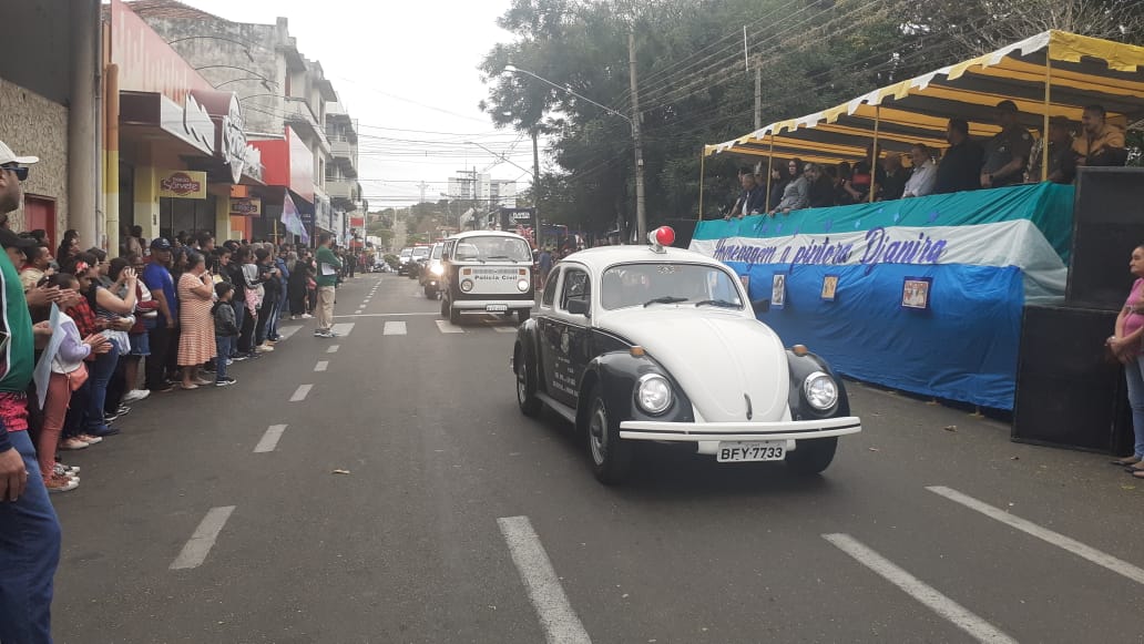A frente da apresentação em destaque, como acontece todos os anos vem o emblemático VW Fusca, ano 1985, original, viatura histórica da Polícia Civil. Este veículo é um símbolo da história e do trabalho incansável dos policiais civis aposentados que que outrora fizeram parte da instituição e hoje com sua participação receberam simbolicamente a homenagem da instituição.