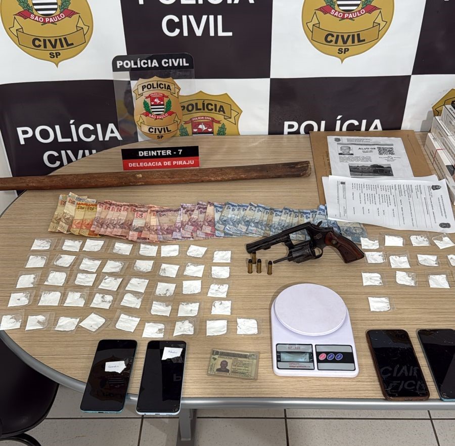 Durante o cumprimento do mandado de busca e apreensão na residência dos investigados, os policiais civis encontraram 54 papelotes de cocaína, um revólver com numeração raspada, uma quantia em dinheiro, quatro aparelhos celulares, uma balança de precisão e um porrete de madeira. Segundo as investigações, o homem utilizava o porrete para intimidar devedores e praticar tortura física e psicológica, com o objetivo de forçar o pagamento de dívidas relacionadas ao tráfico de drogas.