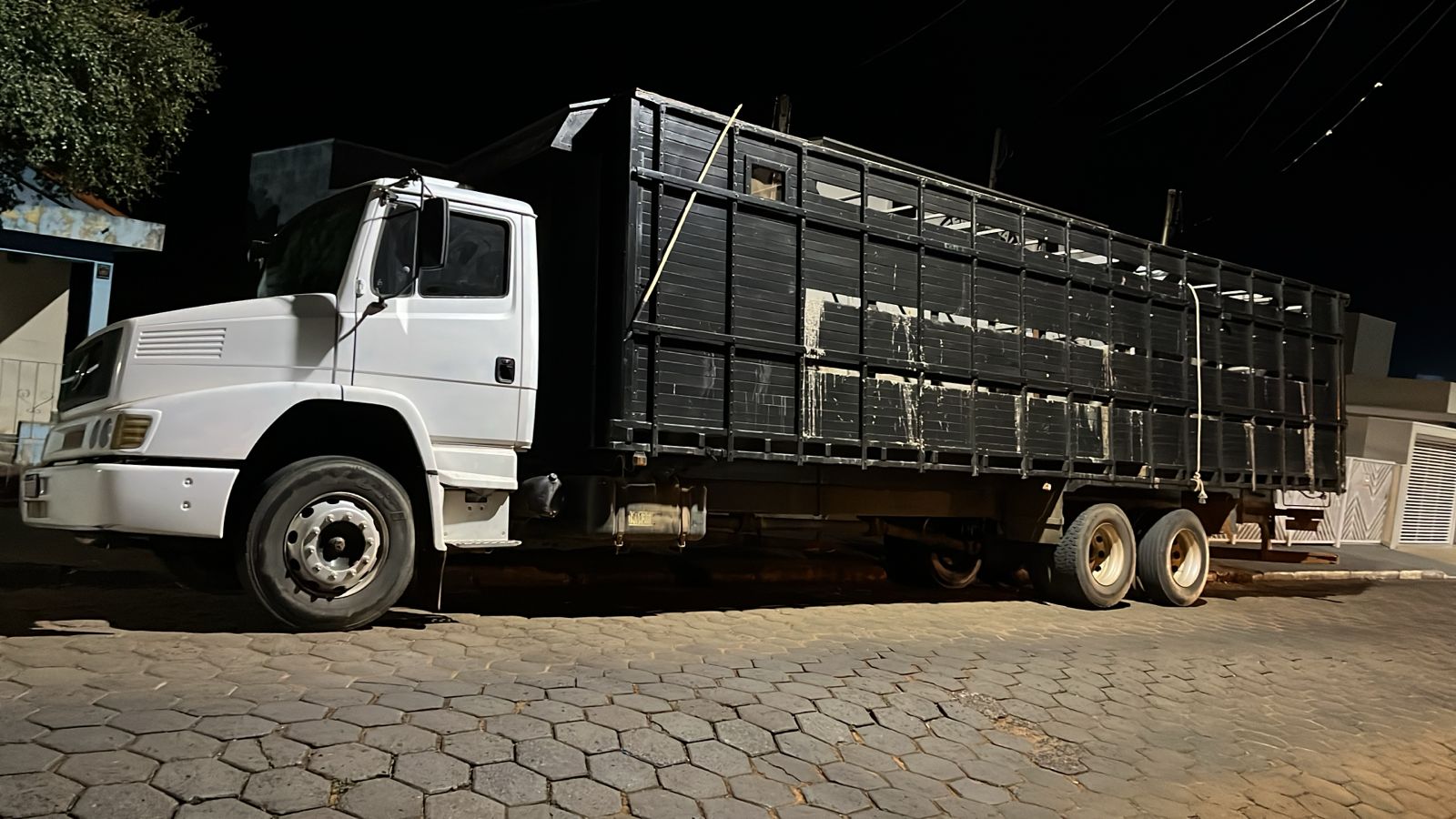 Durante a ação, o investigado chegou a uma das propriedades conduzindo um caminhão Mercedes-Benz L1418, com carroceria boiadeira. A análise preliminar indicou indícios de adulteração no chassi e a apresentação de um Certificado de Registro e Licenciamento de Veículo (CRLV) suspeito de falsificação.