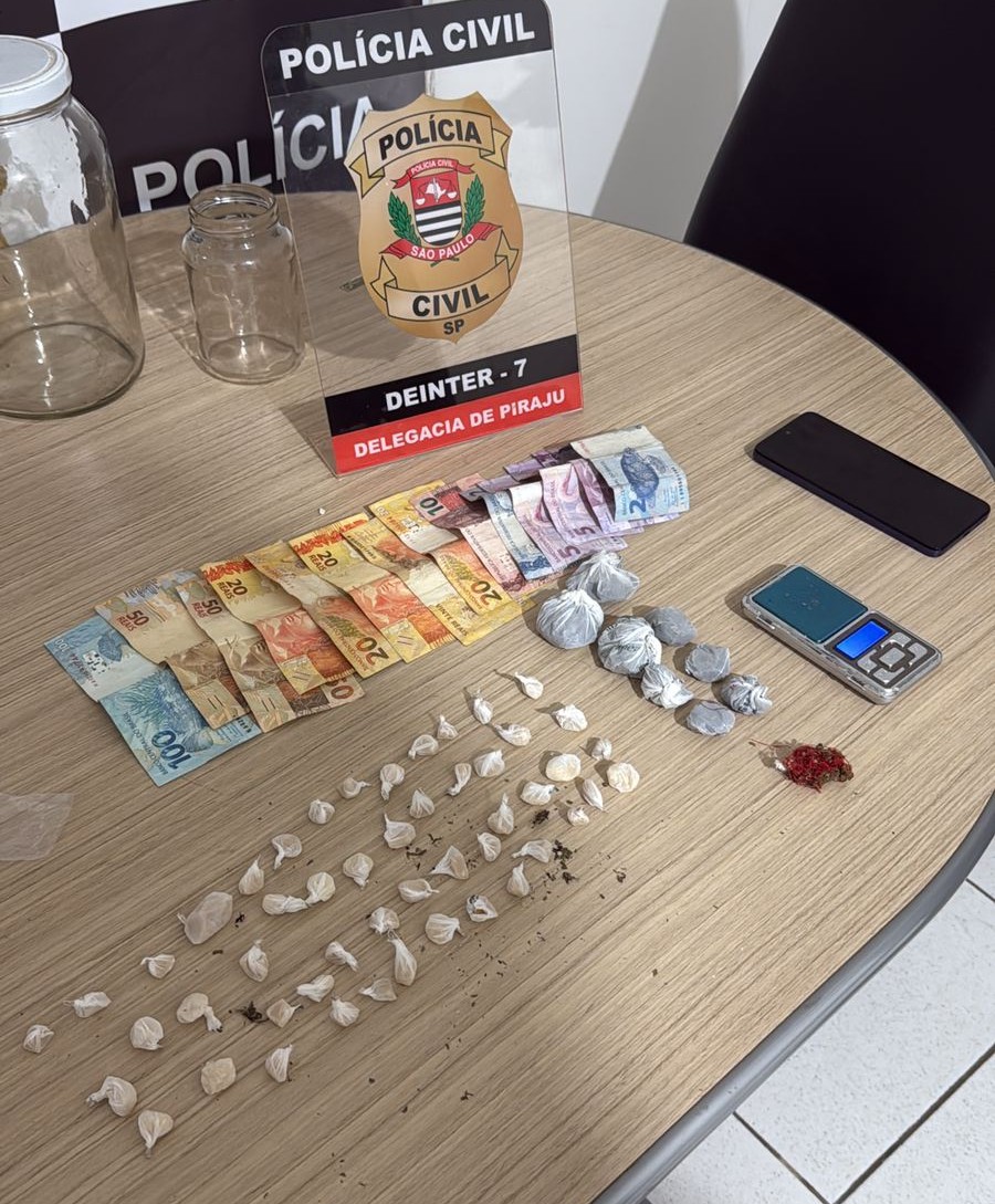 Uma mulher de 22 anos foi presa em flagrante por tráfico de drogas na tarde de quarta-feira (1º de outubro), em Piraju (SP). A ação foi conduzida por policiais civis da Delegacia do município, após denúncia anônima que apontava a distribuição de entorpecentes em frente a uma residência no Conjunto Residencial Doutor José Maria Arbex.