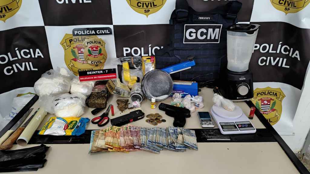 Uma operação conjunta deflagrada entre os dias 6 e 7 de novembro, em Paranapanema, resultou na prisão de dois homens, de 23 e 30 anos, além da apreensão de expressiva quantidade de drogas, munições, dinheiro e materiais utilizados no preparo e comércio ilícito de entorpecentes. A ação foi coordenada pela Delegacia de Polícia da cidade e contou com a participação integrada da Polícia Militar e da Guarda Civil Municipal.