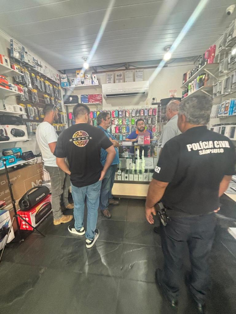 Durante a ação, os policiais civis realizaram vistorias minuciosas nos pontos previamente mapeados, examinando a procedência de aparelhos, carcaças e componentes eletrônicos. Em Paranapanema, a equipe da Delegacia esteve em uma loja local, onde foram analisados 40 aparelhos celulares, todos regularizados.