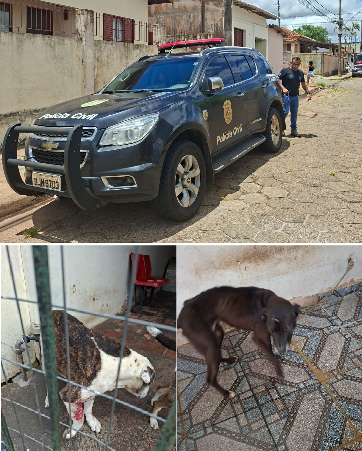 Além das duas cadelas resgatadas, os agentes localizaram no interior do imóvel outros cães, gatos e nove pássaros. Apenas três das aves possuíam anilhas de identificação, permanecendo seis em situação irregular.