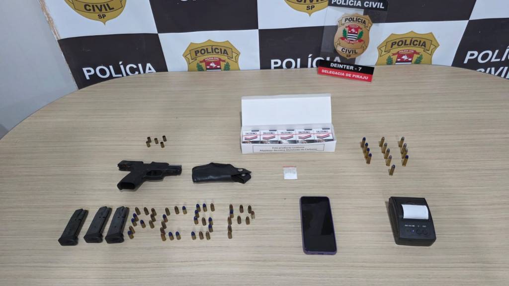 Policiais civis da Delegacia de Polícia de Piraju prenderam em flagrante, na tarde de quinta-feira (12), um homem de 38 anos, durante o cumprimento de mandado de busca e apreensão em um bar localizado na Avenida Humberto Martignoni, naquele município. A ação foi realizada no âmbito de investigação que apura disparos de arma de fogo ocorridos recentemente na cidade.