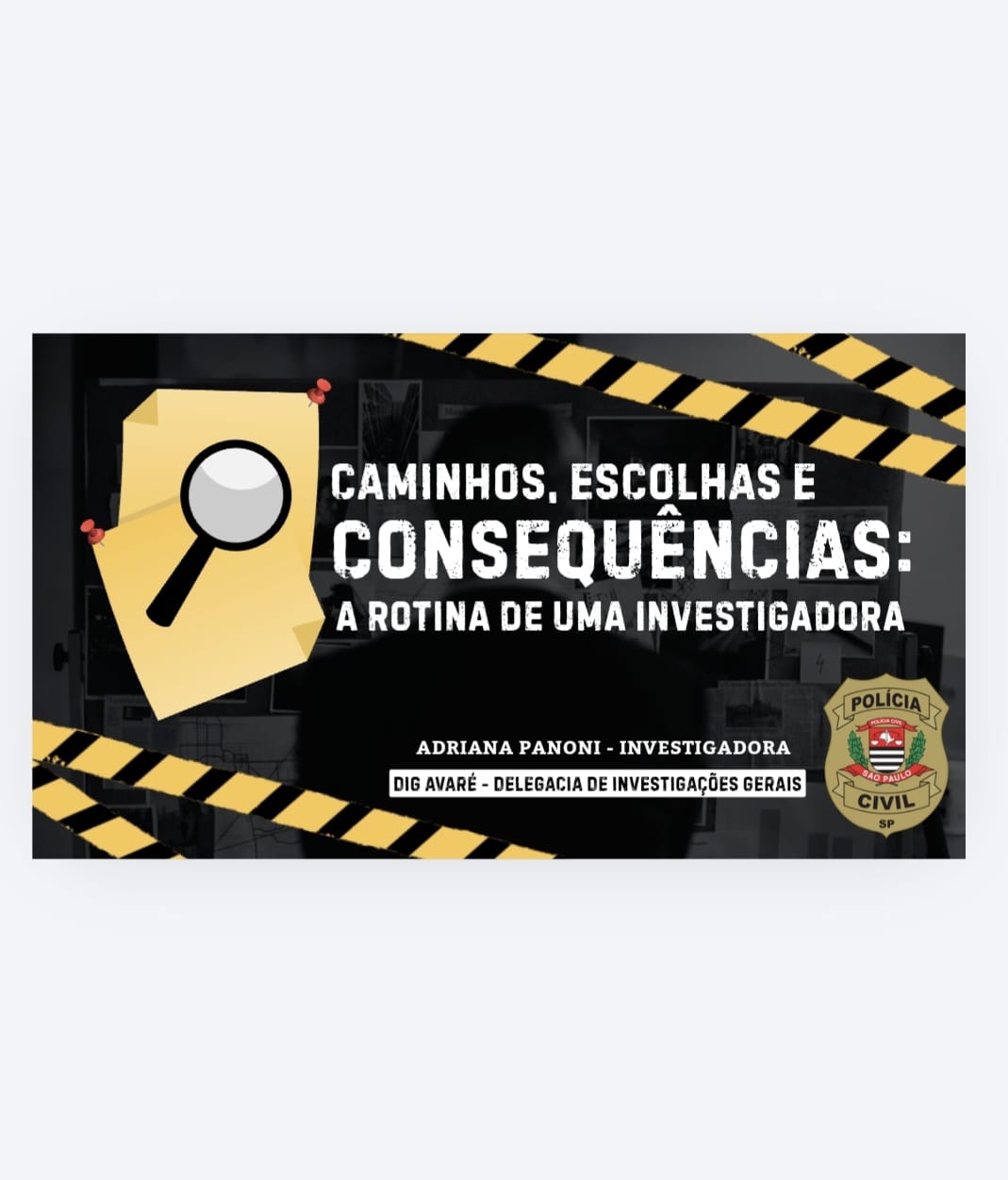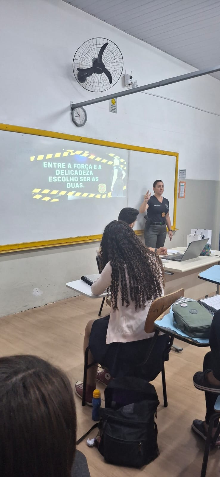 Com duração aproximada de duas horas, a palestra teve como tema “Caminhos, Escolhas e Consequências: A Rotina de uma Investigadora”, abordando, de forma clara e acessível, aspectos relevantes da carreira na Polícia Civil, especialmente no que se refere à função de Investigador de Polícia. O encontro proporcionou aos estudantes uma compreensão concreta sobre a profissão, seus desafios e responsabilidades.